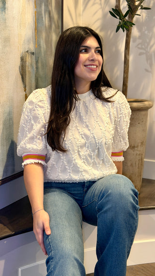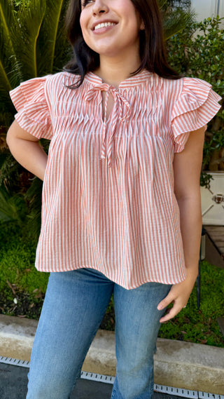 The Cream Collared Short Sleeve Striped Top
