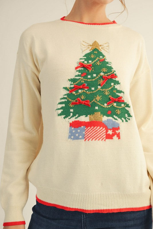 Celebrate the season in style with our Cozy Oversized Christmas Tree Sweater — the perfect holiday sweater for women who love warmth, comfort, and festive charm! This soft knit sweater features a beautifully detailed Christmas tree with bows and presents, bringing cheerful holiday vibes to every outfit.