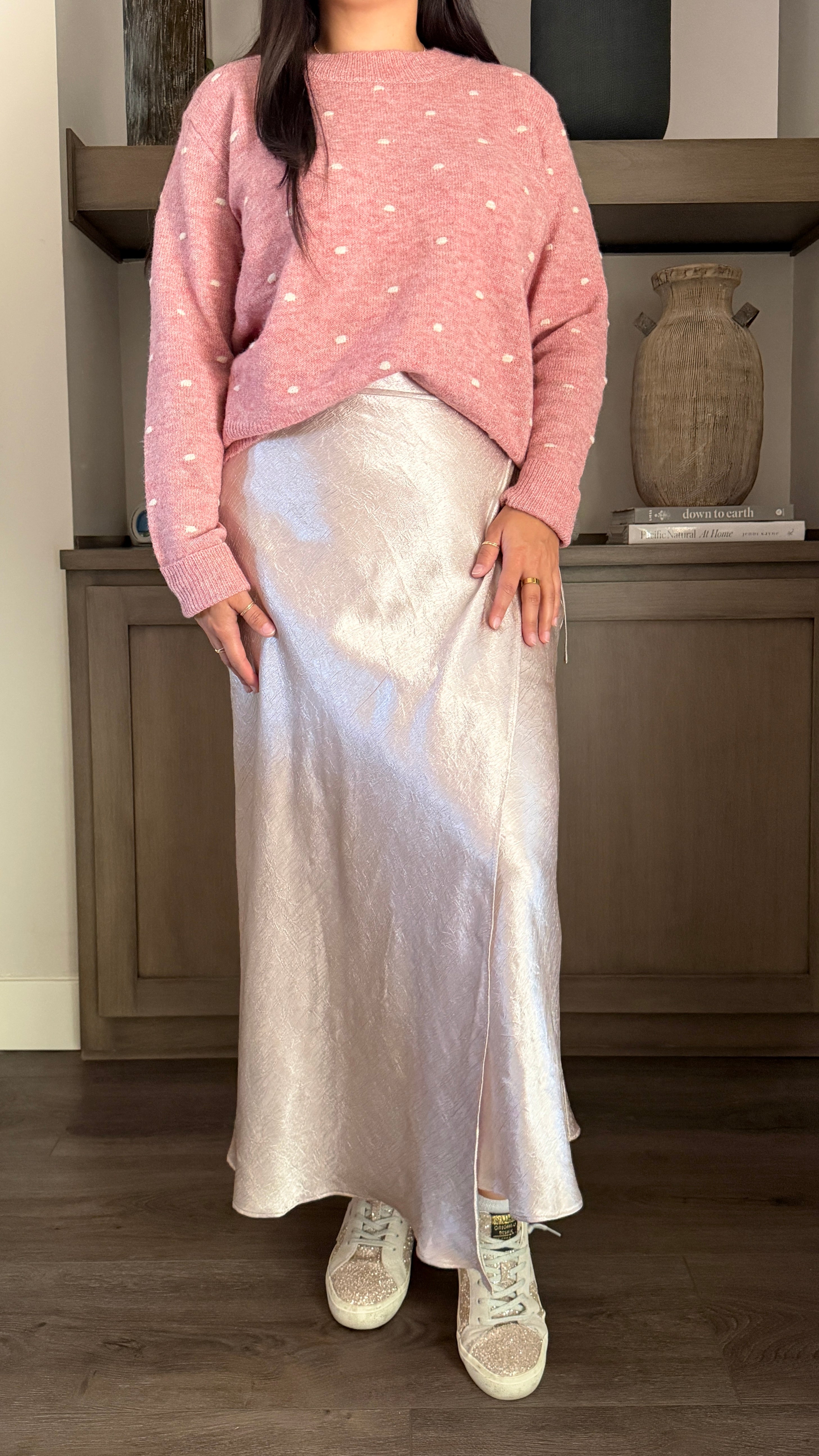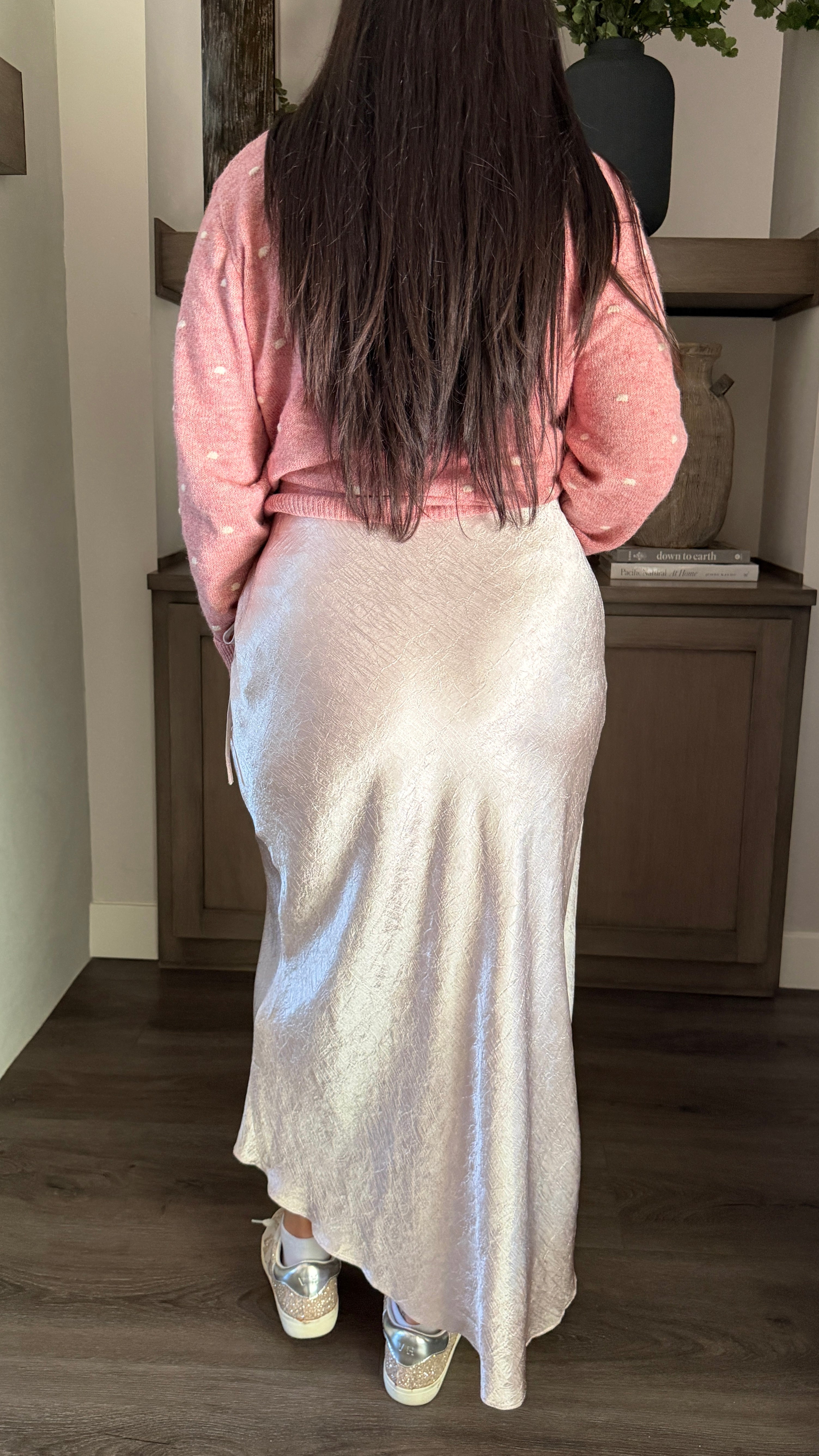 Elevate your wardrobe with this elegant full-length satin skirt in a gorgeous champagne hue. The soft, flowing fabric drapes beautifully for a flattering silhouette, while the tie-waist closure adds a feminine, adjustable fit. Perfect for special occasions, date nights, or dressing up your everyday look, this skirt brings effortless sophistication to any outfit.
